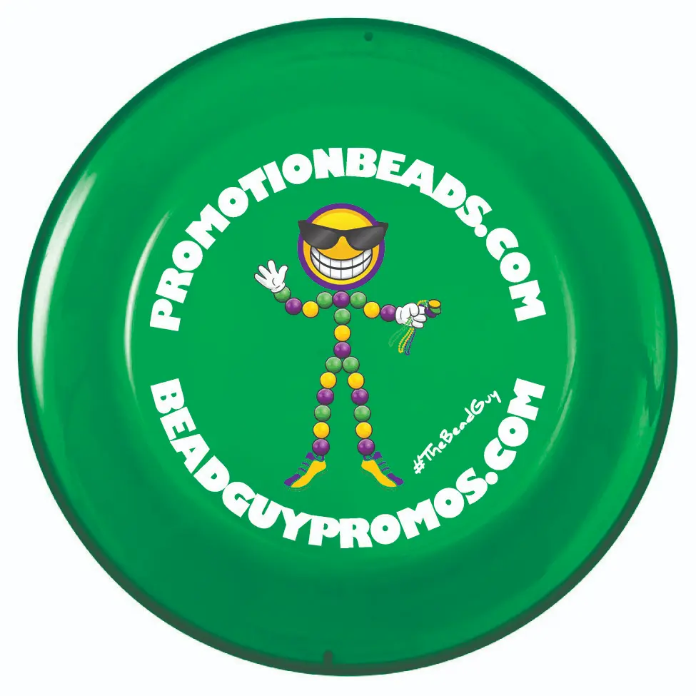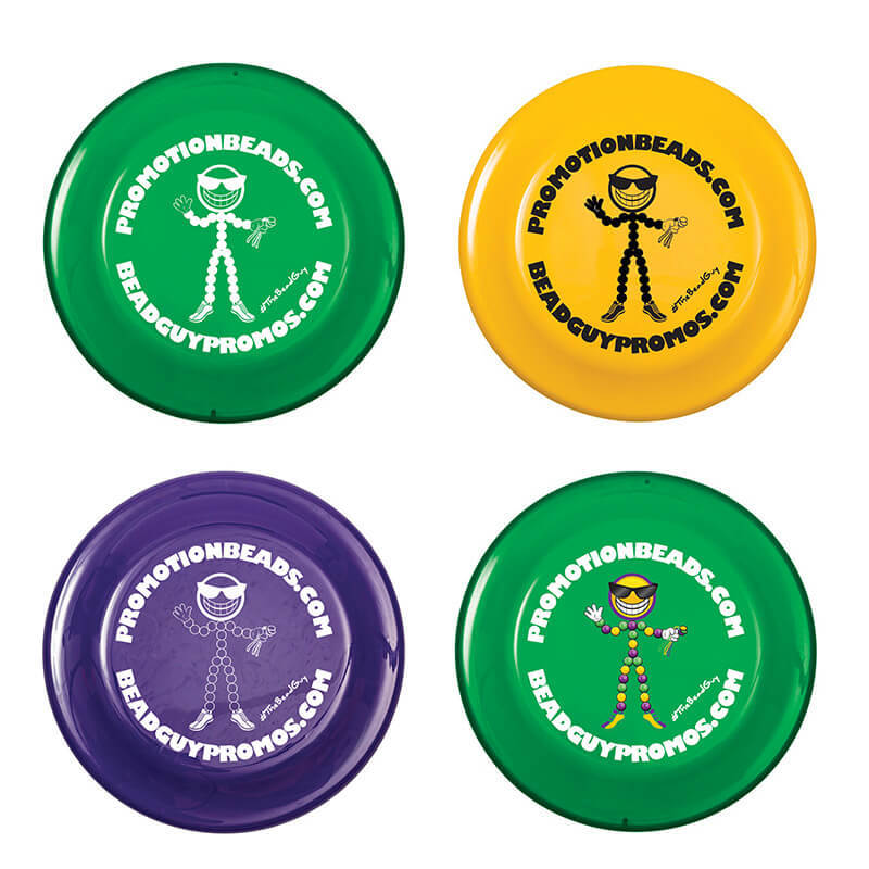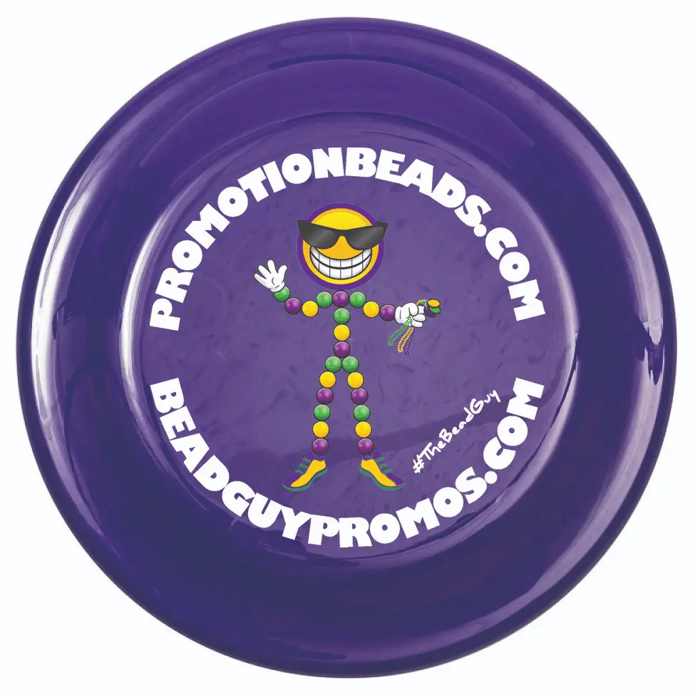 Description: PromotionBeads.com offers custom Mardi Gras Frisbees in one and full color imprint. The Mardi Gras Frisbee is 9.375 inches and made in the USA! If you have questions or want more options, please contact us at beadguy@yahoo.com or 877-723-2348 to discuss your event needs.