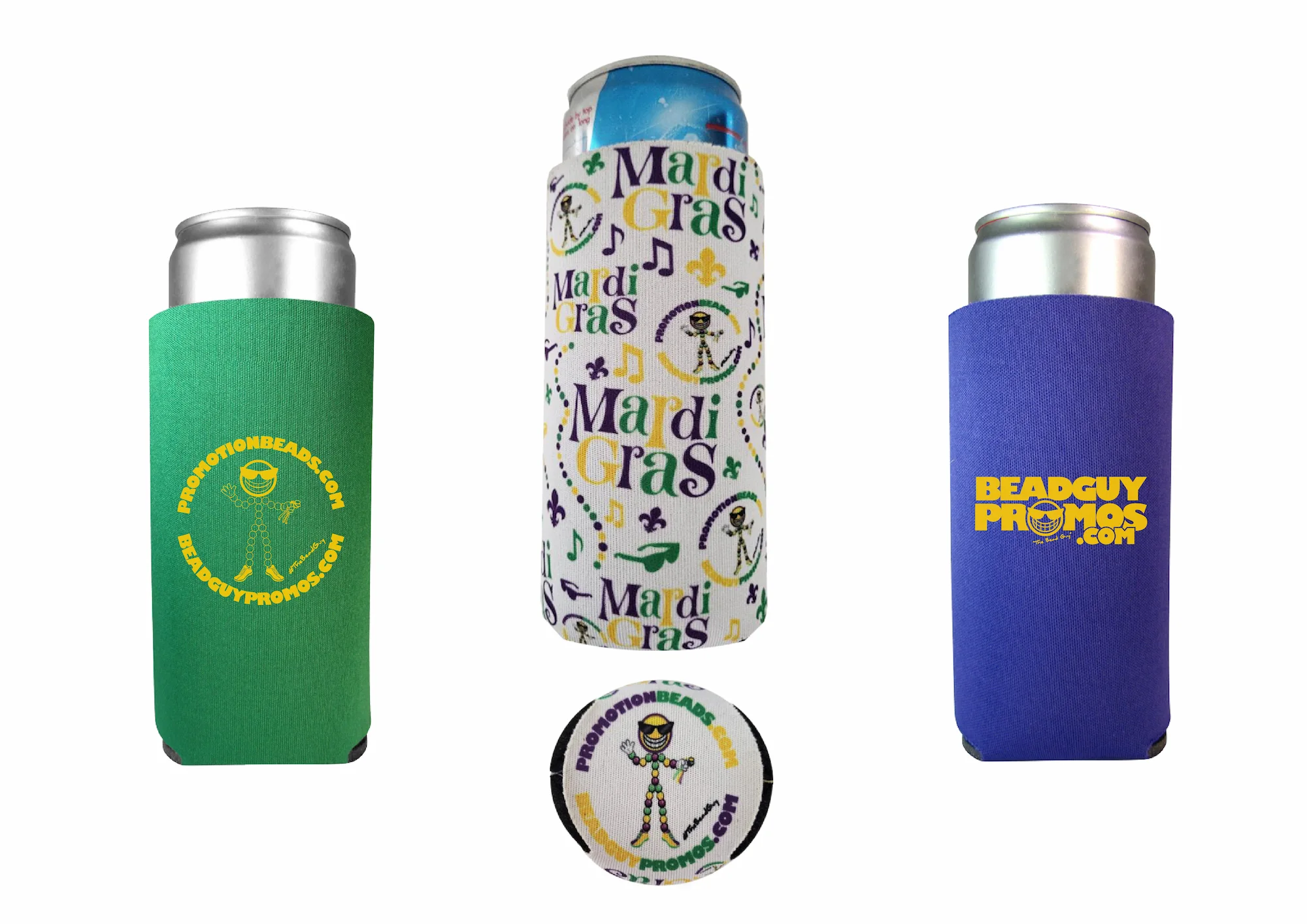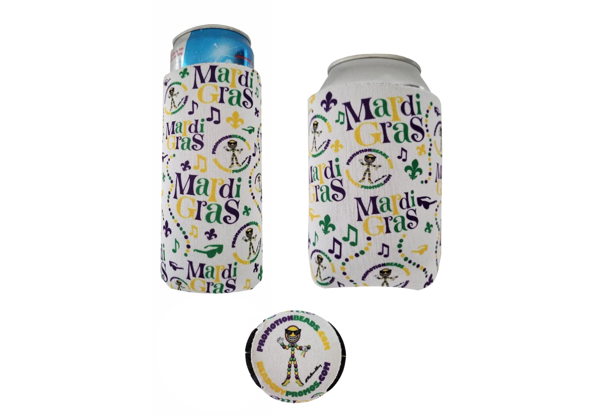 PromotionBeads.com offers custom Mardi Gras Can Koozies with One Color and Full Color Digital Imprint, available for standard or slim cans. We offer various styles, and fast lead times for all your promotional drinkware needs. For additional drinkware options, please contact us at beadguy@yahoo.com or 877-723-2348 to discuss your event needs.